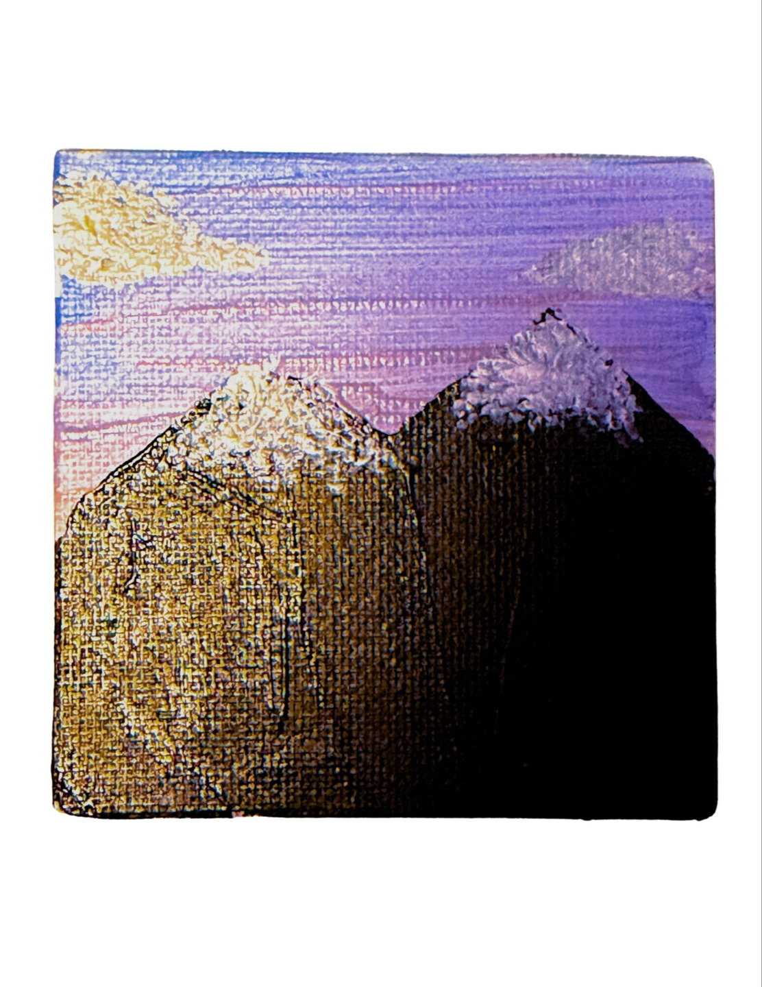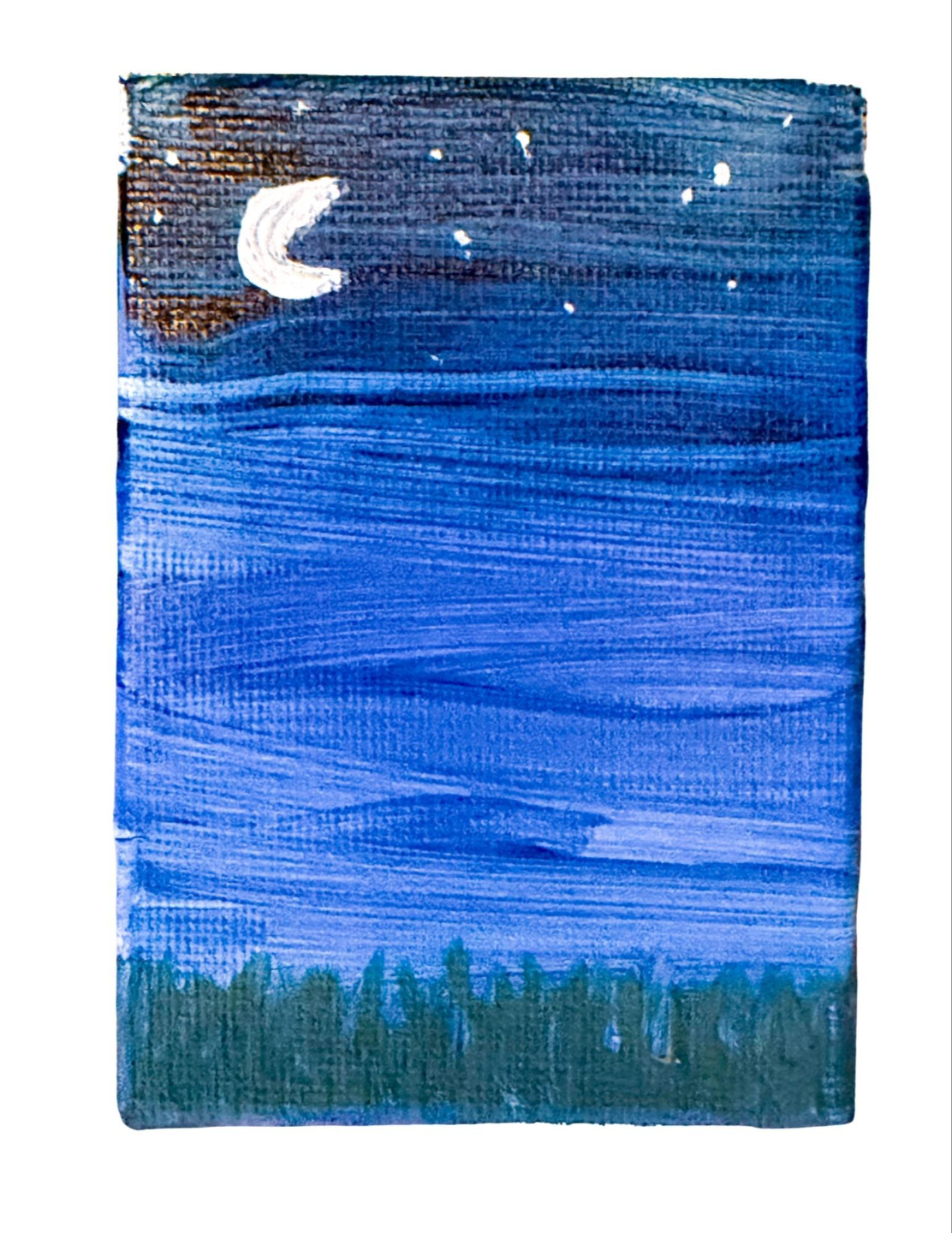 Kirstina utforskar fargar, form og stemningar gjennom små måleri på ulike underlag.